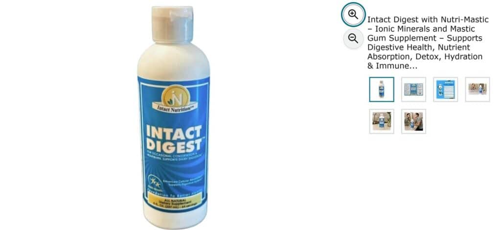 Per your IFUS Website: “Intact Digest™ with Nutri-Mastic™ is perfectly balanced with Ionic Minerals & Mastic Gum. This Proprietary Blend combination helps improve delivery of Nutritional Absorption, Anti-Oxidants, Anti-Inflammatory Properties & Natural Anti-Bacterial benefits into the cellular system, supporting Digestive function and Optimal Health. Intact Digest™ helps provide relief from occasional constipation, cramping, fatigue and heartburn. It supports dairy digestion, hair, skin and nail growth and is safe for daily use. It is not a laxative or harsh fiber.”