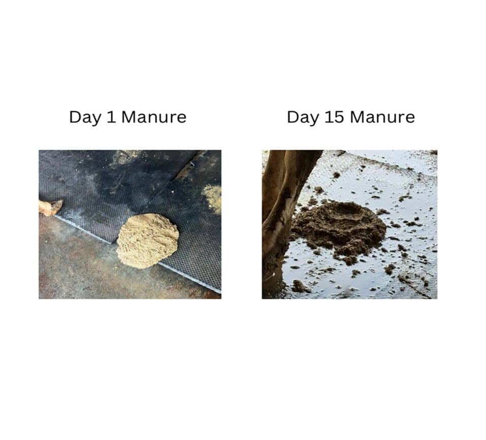 In comparing to the pictures above, the pictures below illustrate the transformation of Manure Pats at the SUMUL Dairy after 15-days with SGP+2.0™ applied as 15% of Total Ration: