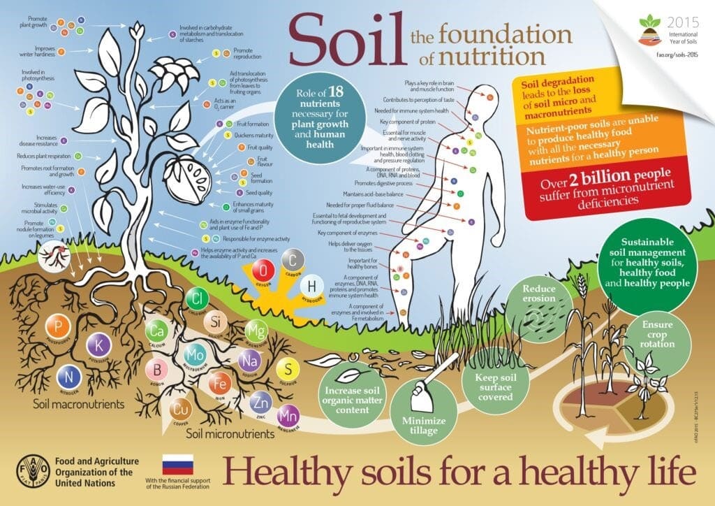 We begin with the notion of “Soil: The Foundation of Nutrition” per the illustration below. This simplified, yet complex diagram attempts to illustrate the actions, interactions, and relationships (both inter- and intra-) that create a maze of inter-dependencies that allow for the health, BUT unfortunately more so the illness of what is believed to be over 2-Billion of the roughly 8.25Billion humans from “micronutrient deficiencies.” This affects more than 25% of the present global population…the socio-economic consequences of which are staggering.